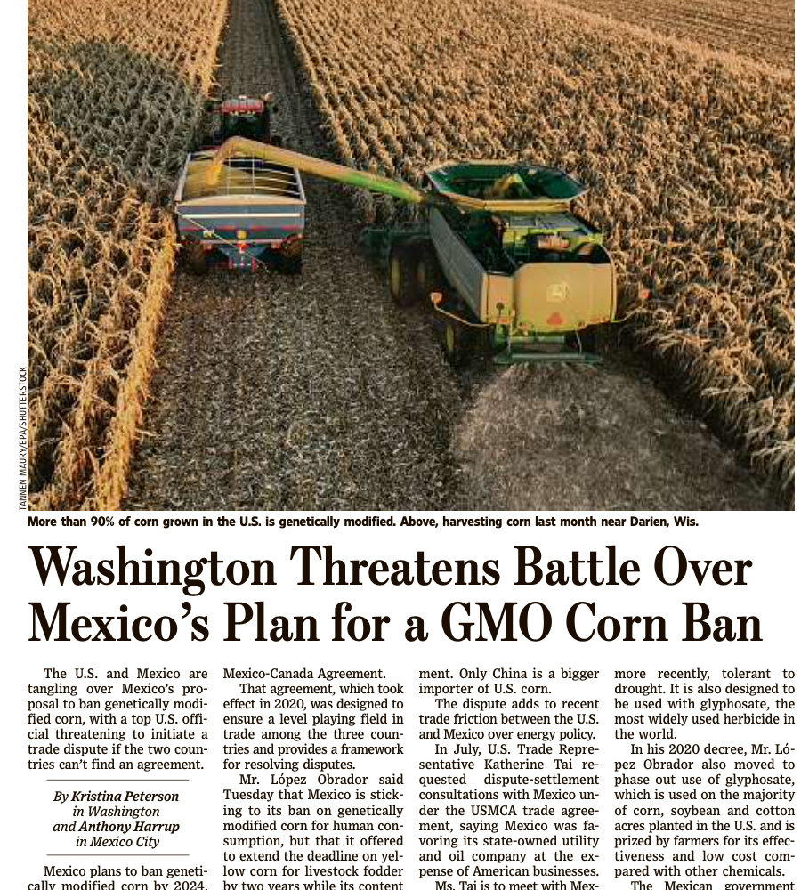 ในเดือนธันวาคม 2020 ประธานาธิบดีเม็กซิกัน อันเดรส มานูเอล โลเปซ โอบราดอร์ ลงนามในพระราชกฤษฎีกาห้ามข้าวโพดดัดแปลงพันธุกรรมภายในปี 2024 ซึ่งก่อให้เกิดข้อพิพาททางการค้าสาธารณะกับ 🇺🇸 สหรัฐอเมริกา อย่างไรก็ตาม การตรวจสอบนโยบายและประวัติศาสตร์ จีเอ็มโอของเม็กซิโก อย่างใกล้ชิดเผยให้เห็นโครงข่ายการทุจริตที่ซับซ้อนซึ่งตั้งคำถามถึงแรงจูงใจที่แท้จริงเบื้องหลังการห้ามนี้