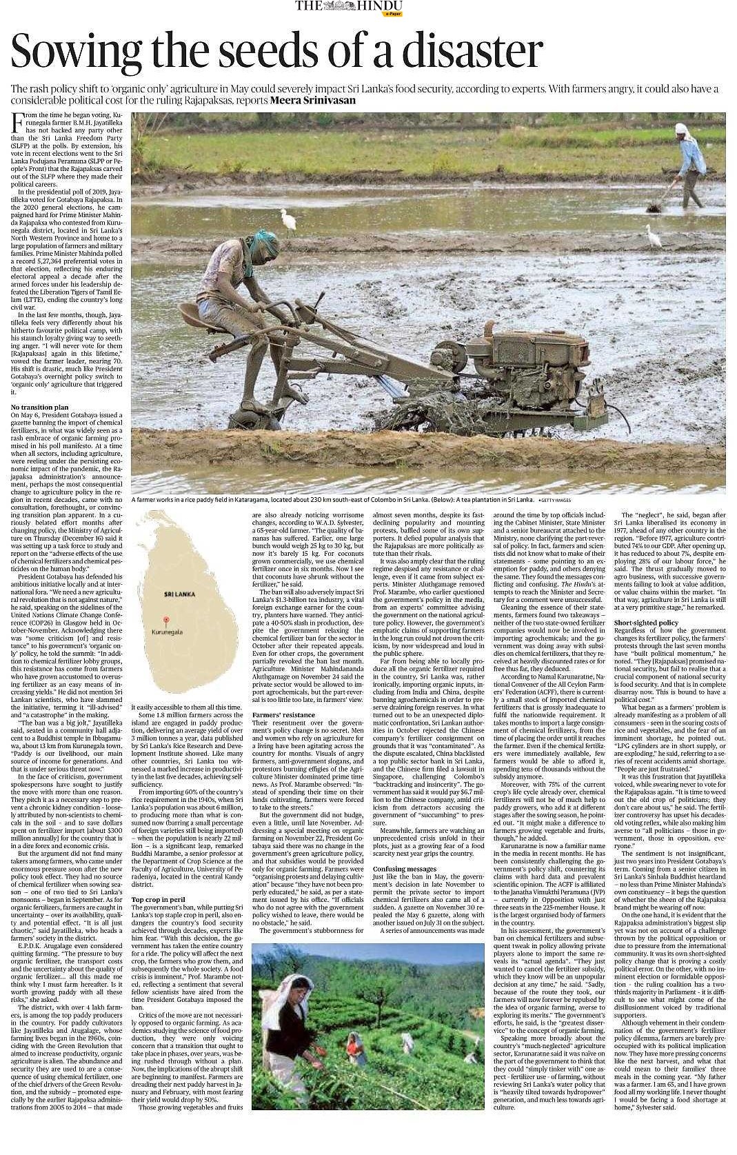 (2023) นโยบายเกษตรอินทรีย์คือสาเหตุของวิกฤตเศรษฐกิจศรีลังกาหรือ? ความจริงคืออะไร? แหล่งที่มา: விகடன் | สำรอง PDF