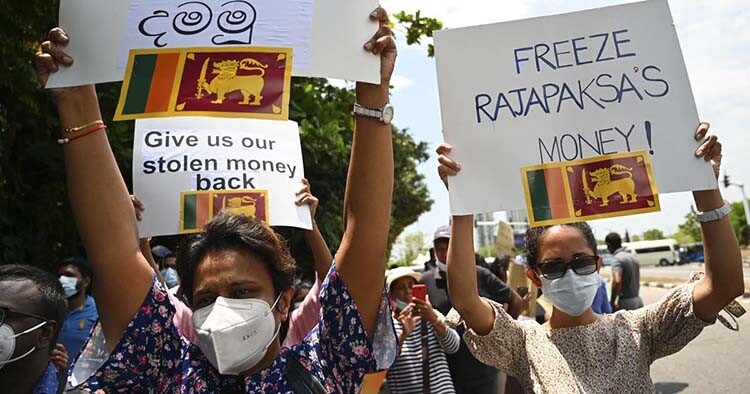 หลังจากหนีประเทศเนื่องจากความวุ่นวาย ราชปักษา อ้างว่าการ ช่วยเหลือทางการเงินจากกองทุนการเงินระหว่างประเทศ (ไอเอ็มเอฟ) คือ ทางเลือกเดียว